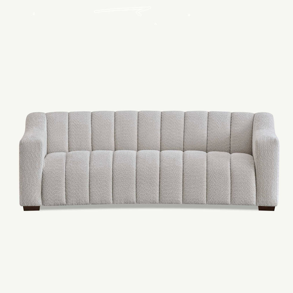 The Astoria Sofa, upholstered in soft oatmeal boucle fabric, brings texture and elegance to any space.